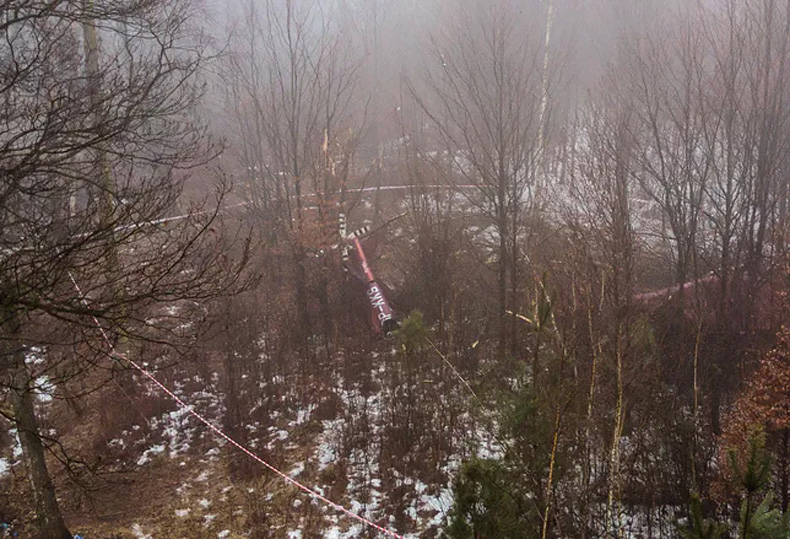 Widnica kentinin Pyszczyna kasabasına bağlı Studzienice köyü yakınlarına kaza yaşandı. Helikopter gece saatlerinde düştü. Bölgede oluşan yoğun sis ve nemli havayla arama çalışmaları aksadı. Kötü hava koşulları sebebiyle olay yerine uzun süre yürüdükten sonra ulaşıldı.