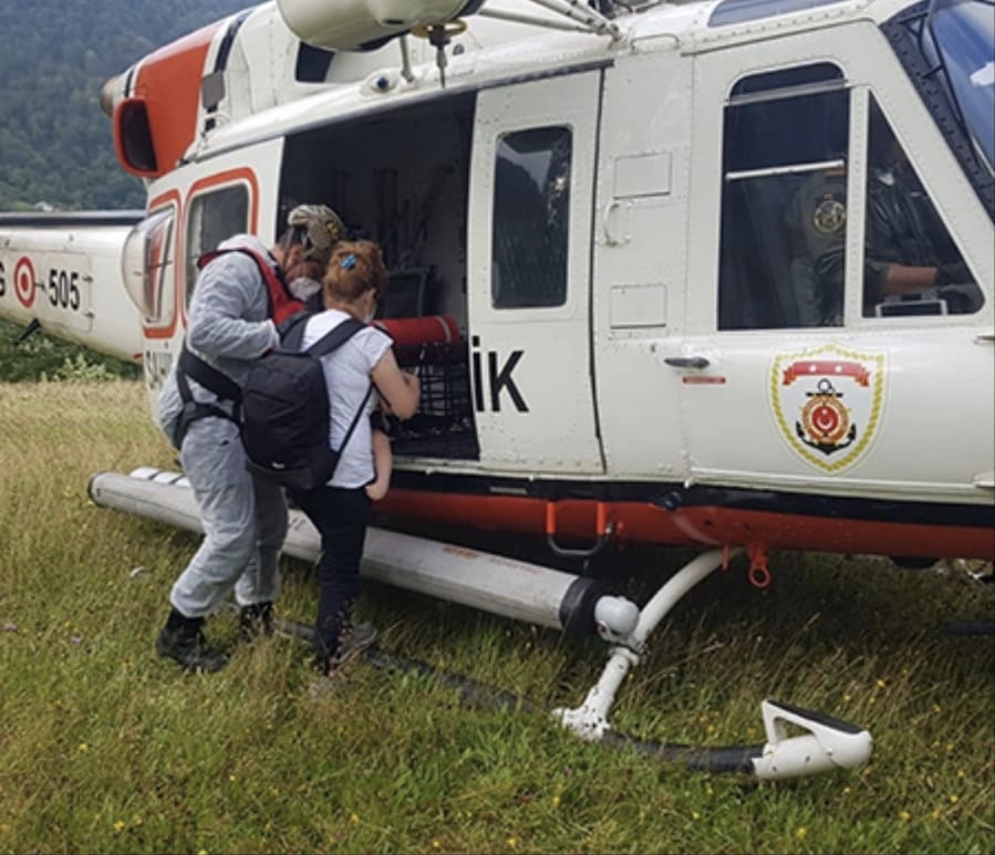 Giresun’da yaşanan sel felaketinden dolayı şehir büyük bir zarar gördü. En fazla zarar gören ilçelerden biri olan Dereli’nin Akkaya köyünde 1 yaşındaki Yunus bebek rahatsızlandı. Rahatsızlanan bebeğin yardımına sahil güvenliğin helikopteri yetişti.