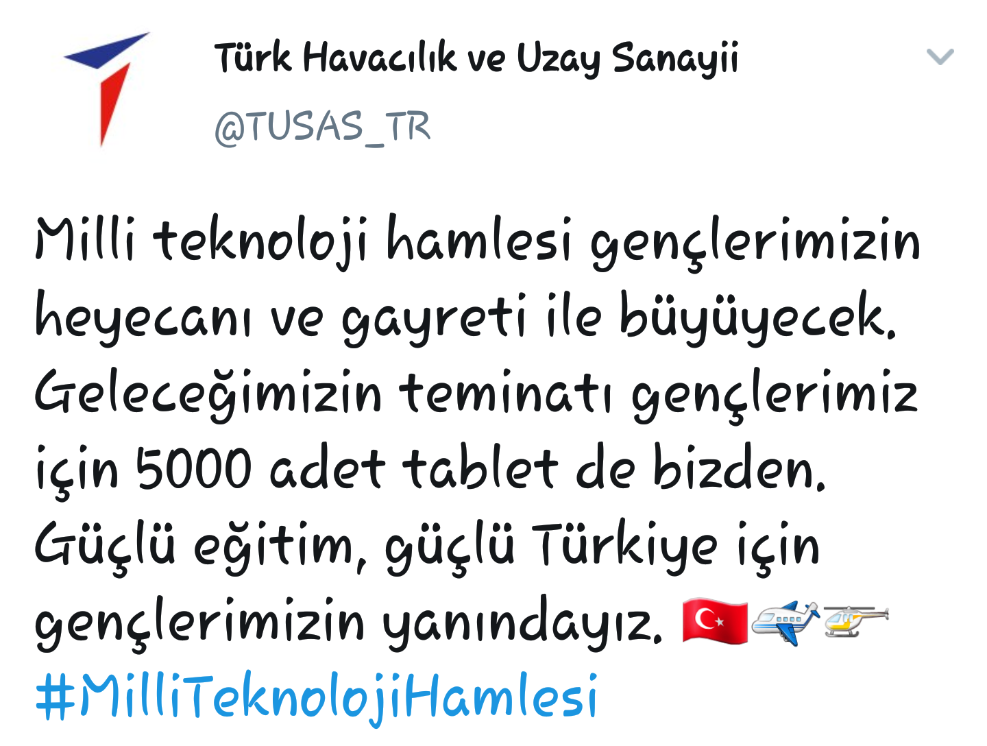 Selçuk Bayraktar’ın ardından TUSAŞ 5.000 adet, ROKETSAN 1.000 adet, ASELSAN 5.000 adet, HAVELSAN 1.000 adet ve STM Defence 1.000 tablet bilgisayarla uzaktan eğitime destek oldu.